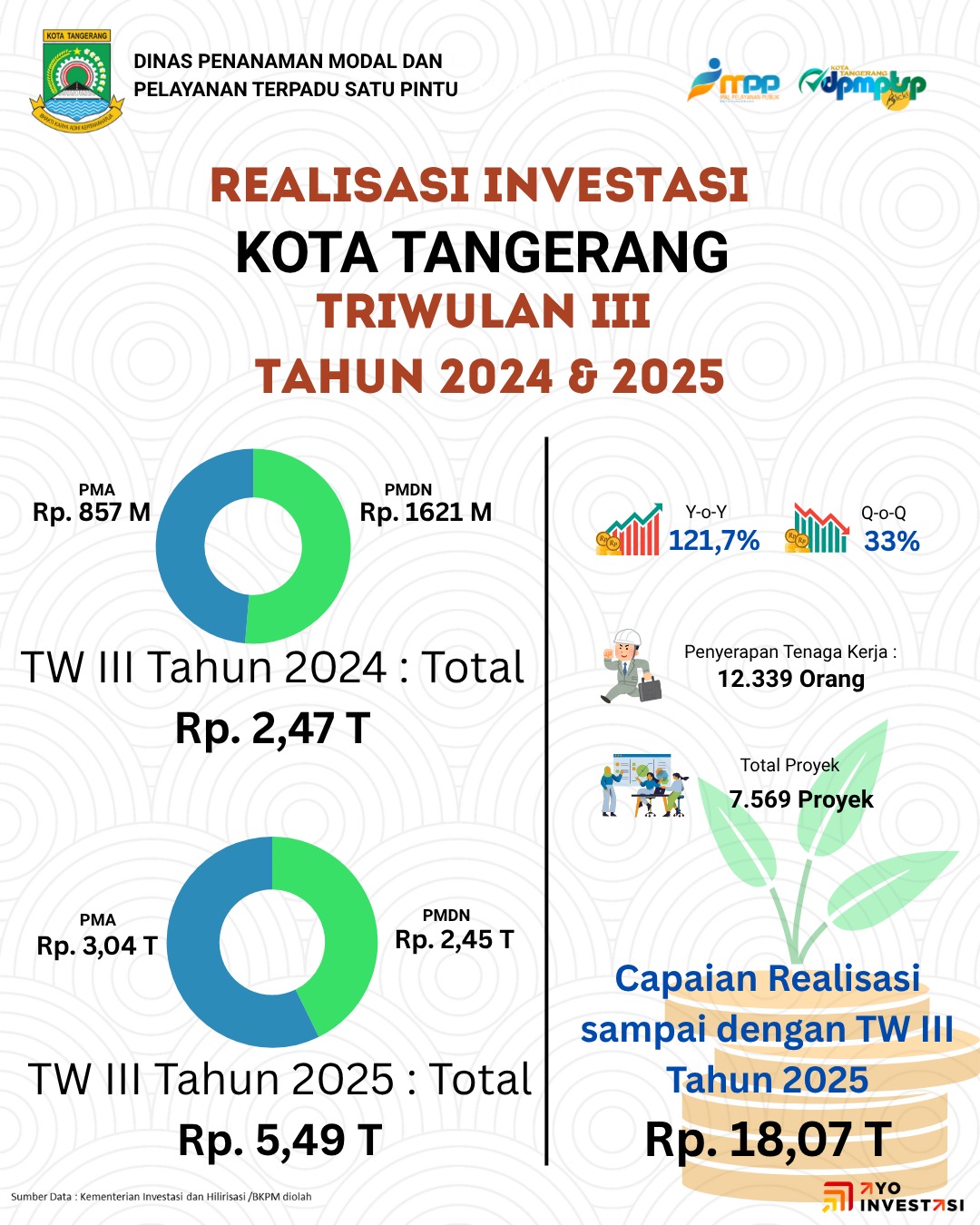 Dari Triwulan ke Triwulan, Investasi Terus Bertumbuh! Kota Tangerang terus membuktikan komitmennya sebagai kota ramah investasi ????✨ Membawa semangat pembangunan dan kesejahteraan bagi warga. ???? Bersama pelaku usaha dan masyarakat, kita wujudkan Kota Tangerang yang makin maju, kompetitif, dan berdaya saing tinggi!